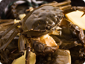 每逢炎夏,青母蟹會(huì)在產(chǎn)卵時(shí)棲身于淺灘河畔,在陽(yáng)光的照射下,體內(nèi)的蟹膏分解成金黃色的油脂,然后滲透到體內(nèi)的各個(gè)部分,使得整只蟹晶瑩剔透、充滿黃油,因此被稱為黃油蟹。